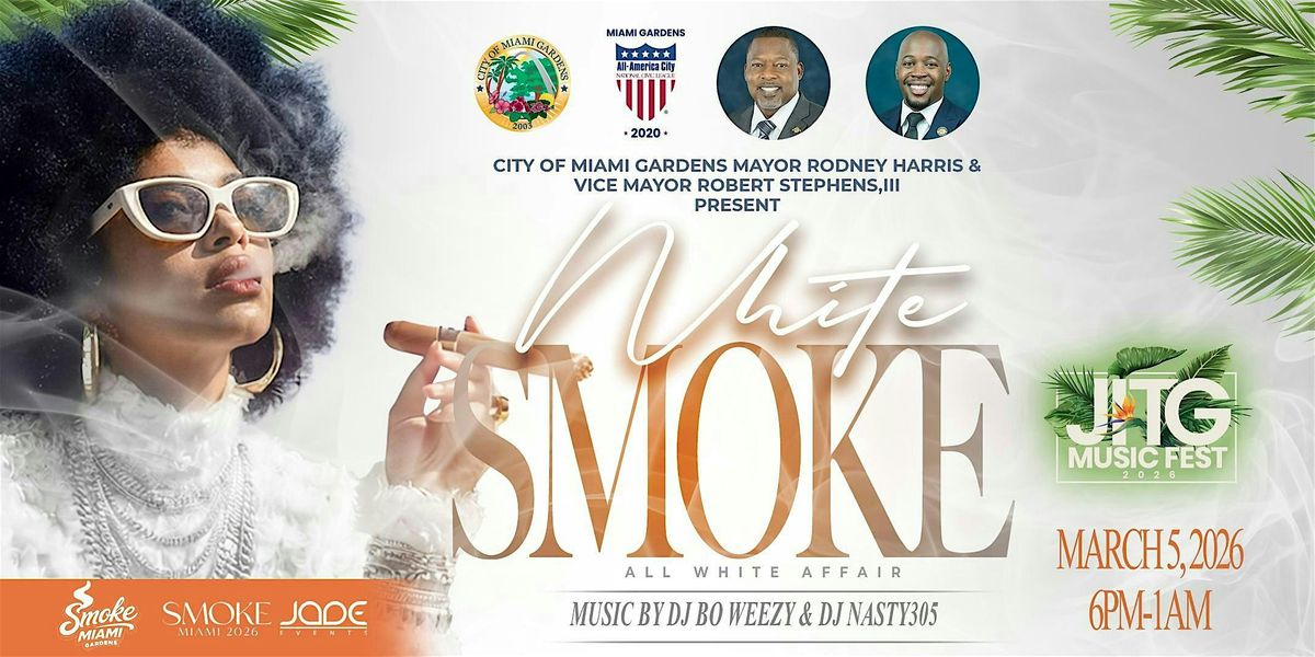 Kick off Jazz in the Gardens weekend in signature Miami style at White Smoke Cigar Social, an elevated rooftop social experience hosted by Mayor Rodney Harris & Vice Mayor Councilman Robert Stephens.