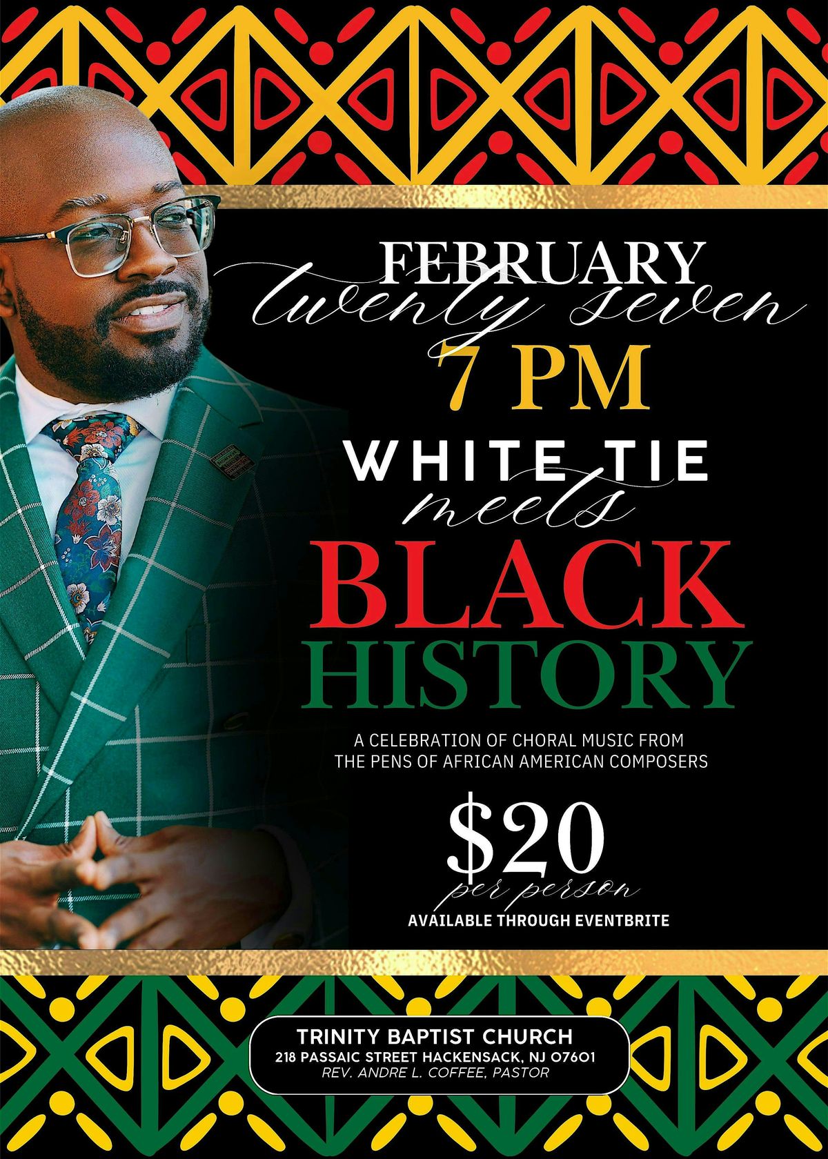 Welcome to White Tie Meets Black History 2026! Join us at Trinity Baptist Church on February 27, 2026 at 7:00 PM (Eastern Time) for an evening filled with elegance and cultural celebration. This event is a unique blend of style and history, bringing together the beauty of white tie attire with the richness of Black heritage. Get ready to enjoy live music, captivating performances, and inspiring stories that highlight the contributions of Black individuals throughout history. Don't miss this opportunity to honor the past and celebrate the future in a truly special setting. We can't wait to see you there!
