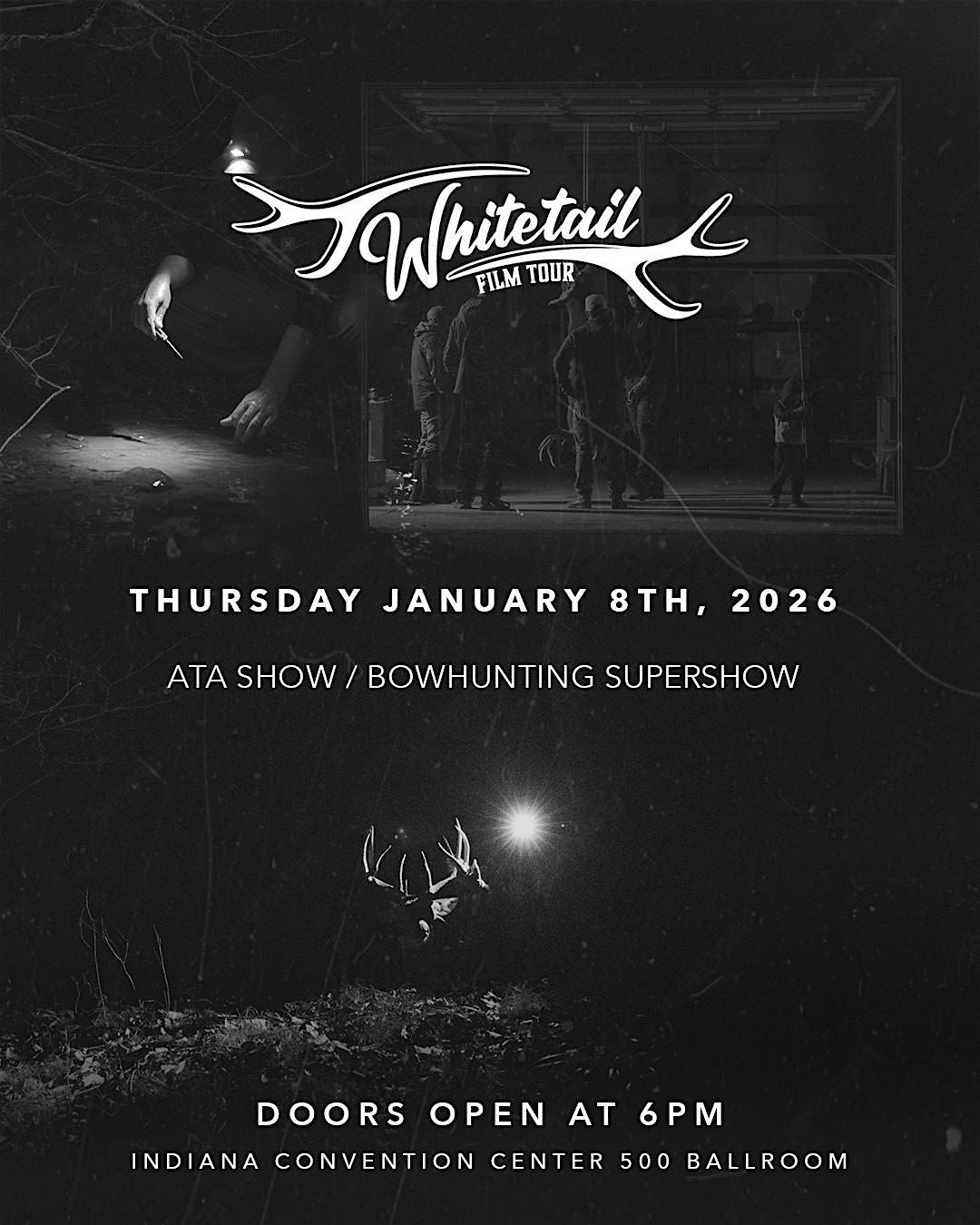 The 1st Annual Whiteail Film Tour will be held in the 500 Ballroom at the Indiana Convention Center during the ATA Show week on Thursday, January 8th. The doors will open at 6pm. The night will be filled with networking, giveaways, music, and you can watch some of the best film makers in the Outdoor Industry. Tickets can be aquired through this page or tickets can be picked up at Carbon Express booth or the Featured Product booth on the ATA Show floor.
