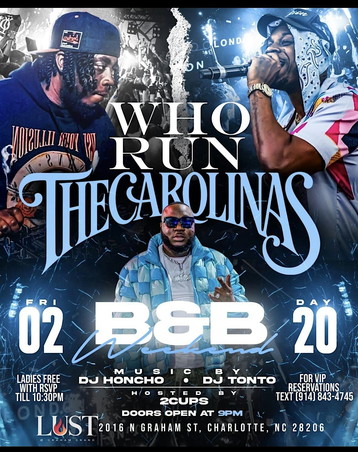 WHO RUN THE CAROLINAS!? This Friday, we’re bringing the city a legendary night as the Carolinas come together at LUST @ Graham Grand for B&B Weekend — one of the biggest link-ups of the year.