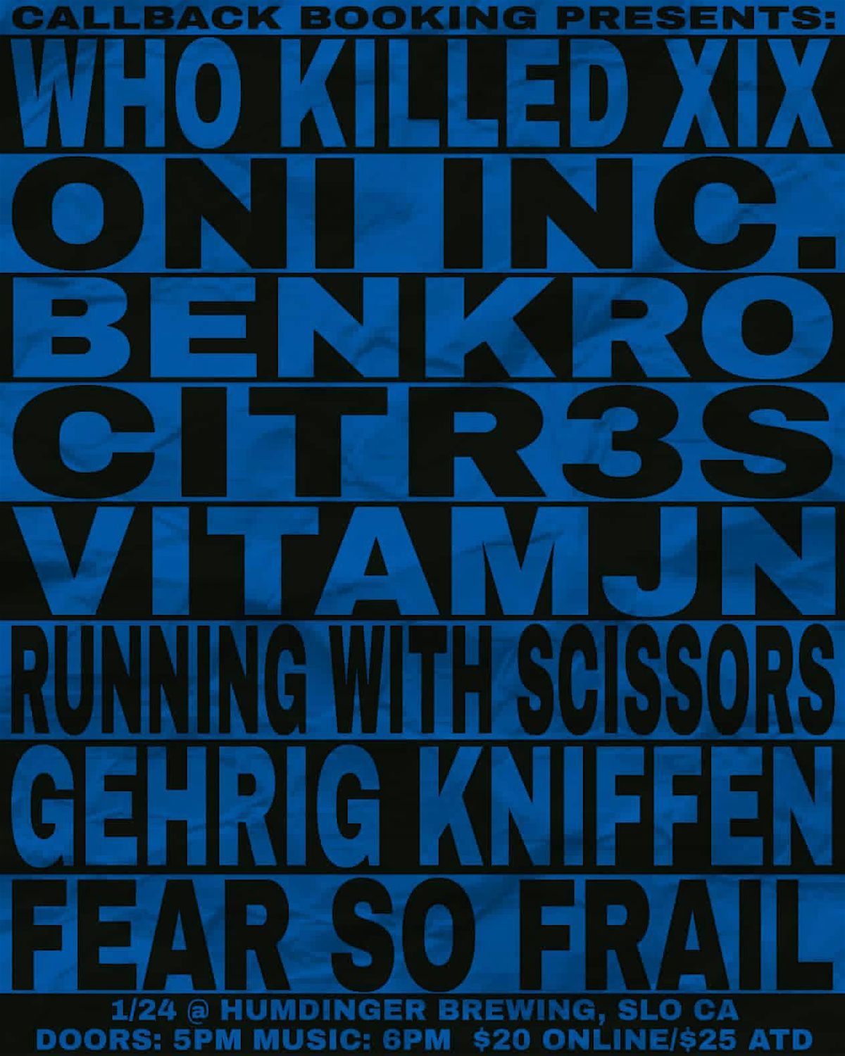 WHOKILLEDXIX, Oni Inc. +6 @ Humdinger Brewing SLO