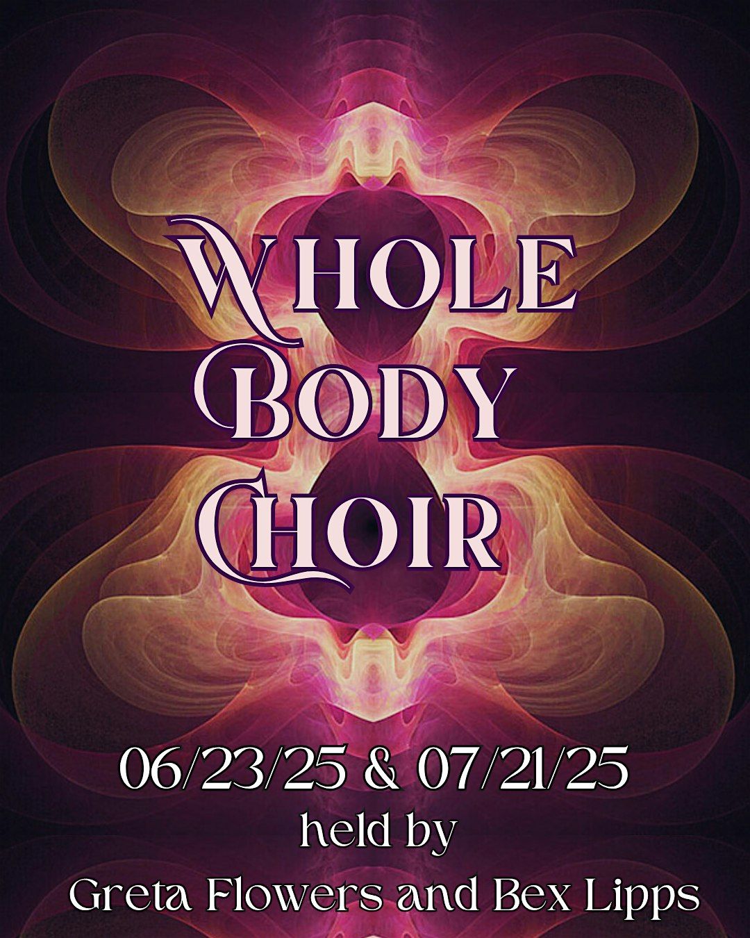 The Whole Body Choir is an embodied communal improvised vocal practice. We honor that voice is an extension of breath, and breath is key to our embodiment. We root into ease instead of effort, practice softening instead of pushing through. We cultivate a direct relationship with the energetic quality of our sound, its resonance in our bodies, and the participation of our whole body in our vocal expression. We welcome dissonance and harmonies.