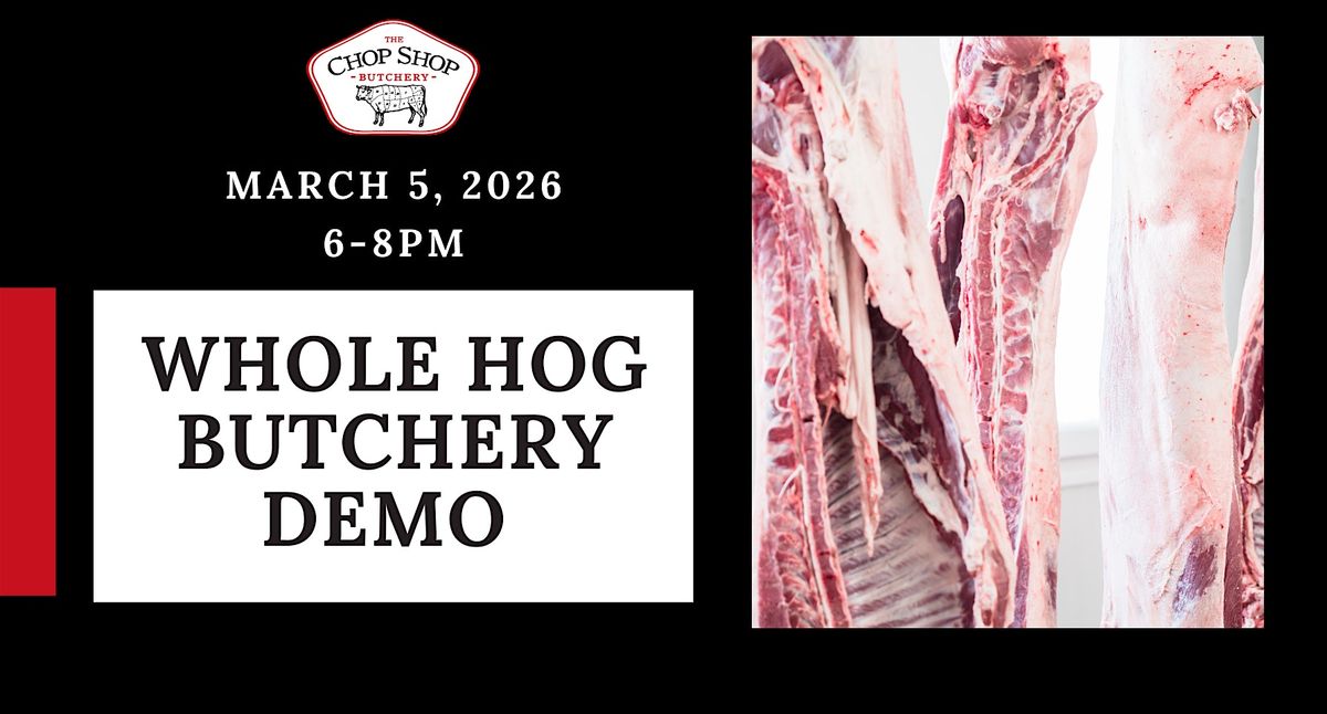 - BUTCHERY TIME: Watch our Butcher breakdown a half of a local, pasture raised hog. We’ll harvest chops, belly, tenderloin, hams, and more! Learn the difference in some often-confused names of popular cuts, learn about cuts you’ve never heard of, and cooking techniques to maximize the meals you can cook from this hog.