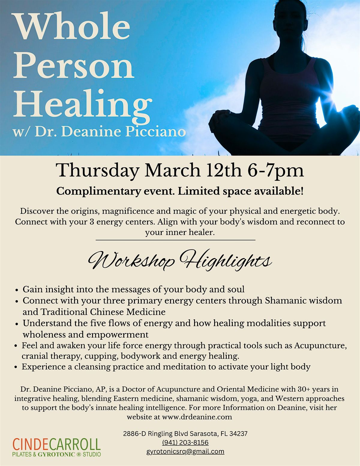 Cinde Carroll-GYROTONIC SRQ, 2886-D Ringling Boulevard, Sarasota, United StatesEvent Location & Nearby Stays: