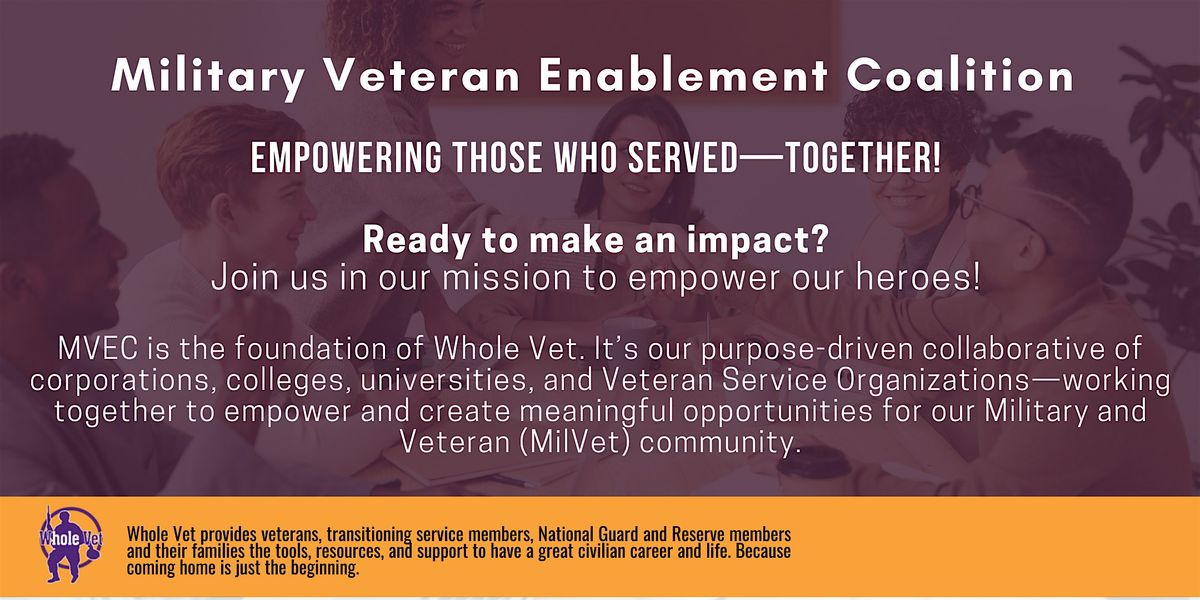 MVEC is the foundation of Whole Vet. It's a purpose-driven collaborative of corporations, colleges, universities, and Veteran Service Organizations—working together to empower and create meaningful opportunities for our Military and Veteran (MilVet) community.