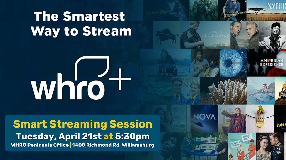 Come learn how WHRO+ makes it easier than ever to enjoy your favorite PBS programming—plus exclusive local content, history, and storytelling from right here in our community. Make sure to bring your smartphone, ipad/tablet or computer so we can get you logged in and ready to stream!