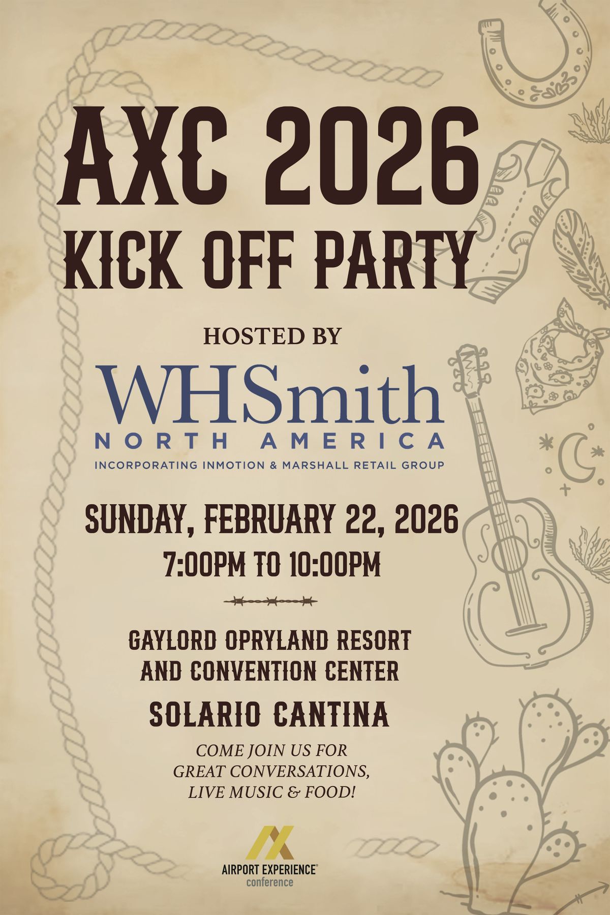 Welcome to the WHSmith North America - AXC 2026 Kick Off Party at Gaylord Opryland Resort & Convention Center! Get ready for a night of fun, music, and networking with industry professionals.