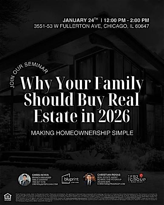 Join trusted Real Estate Broker Christian Rosas and Local Loan Officer Chris Reyes (the youngest branch manager in the state) for an educational seminar focused on helping everyday people understand why buying real estate in 2026 can still be a smart and realistic move.