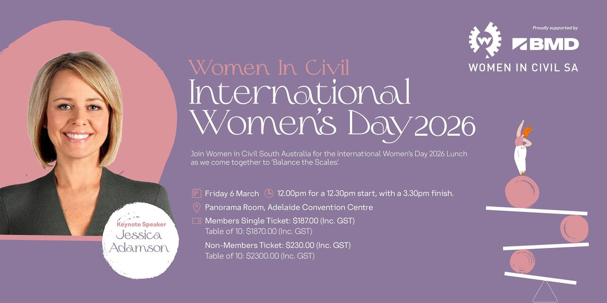 Join Women in Civil South Australia for the International Women’s Day 2026 Lunch as we come together to Balance the Scales.