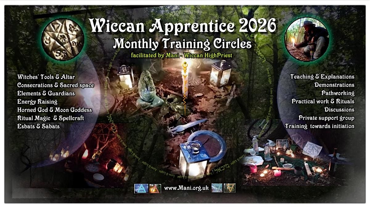 Welcome to `Wiccan Apprentice 2026' - our monthly Woodland-based Circle for practicing Witches, Wiccans and those seeking Training in Witchcraft & Ritual Magic . We begin as open circle for March, April & May. Then this circle will work as a Training Coven.