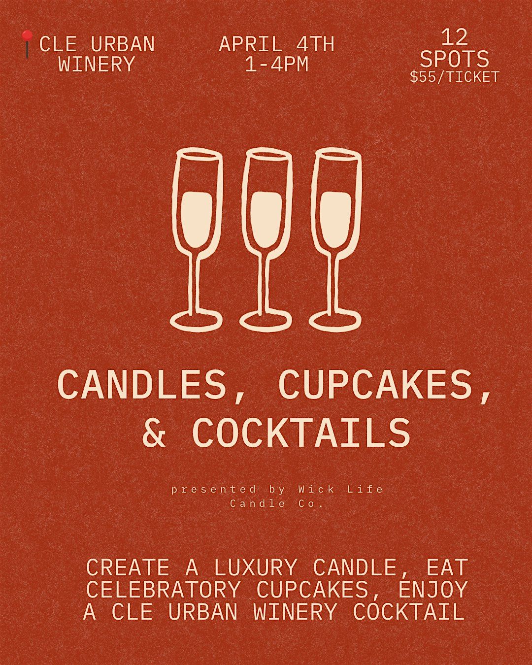In just 3 hours, you'll craft your own luxury candle, indulge in cupcakes, and sip on a hand-selected cocktail courtesy of CLE Urban Winery -all in a chic, photo-worthy setting.