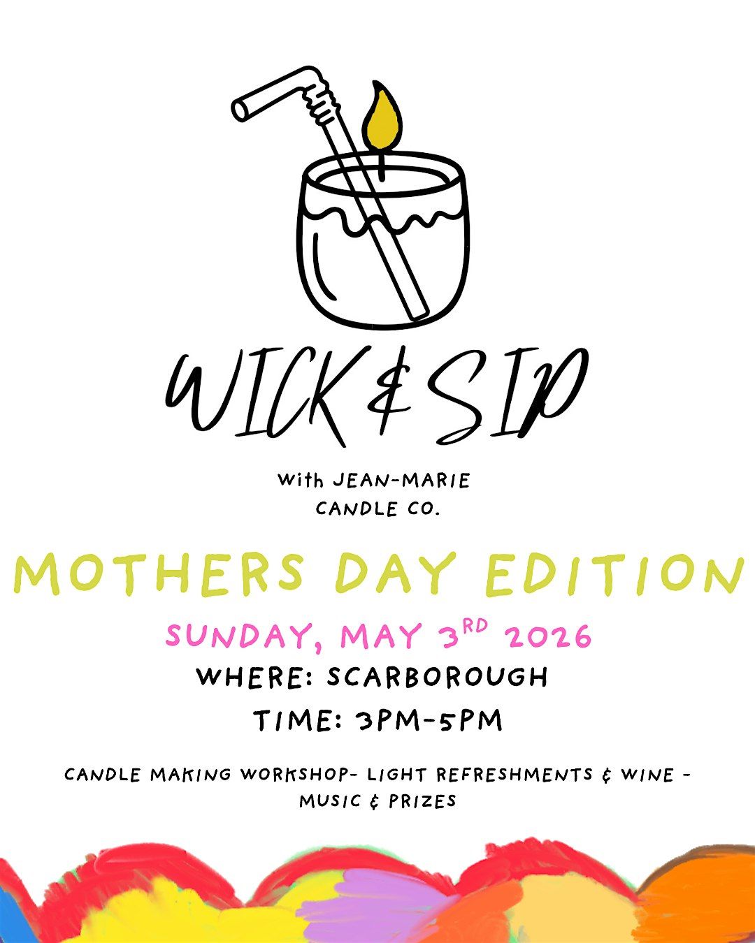Join us for a cozy and memorable candle-making experience you can share with your mom or someone special. Enjoy light refreshments, wine, good music, and a chance to win fun prizes—all while creating your own custom candle to take home. It’s the perfect way to relax, bond, and make something meaningful together this Mother’s Day. 💐