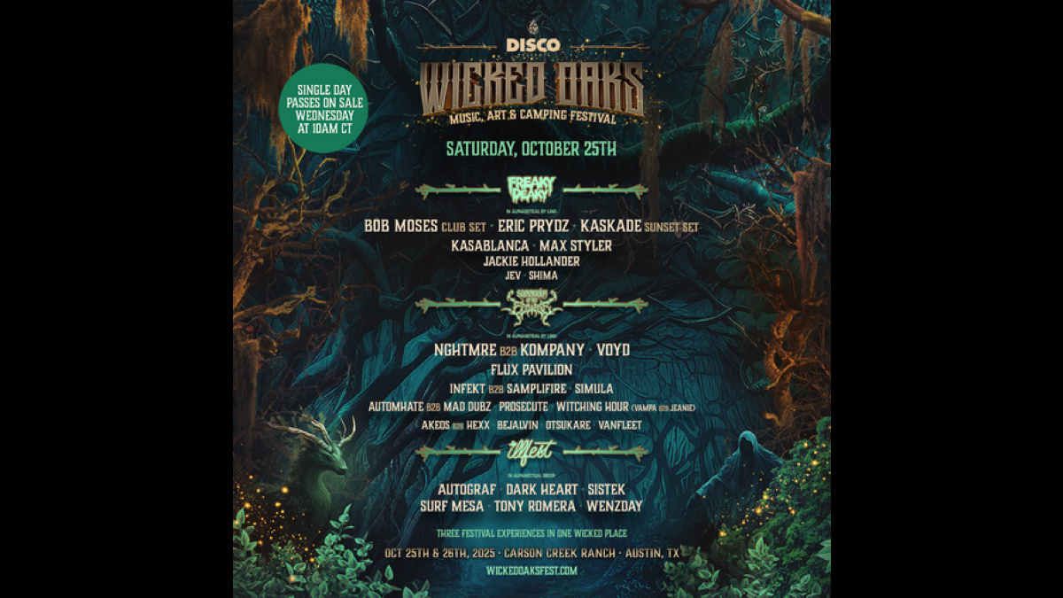 π Location: 30.2284, -97.6611β¨ Discover the extraordinary at Wicked Oaks Music Festival - (Saturday Pass) with Bob Moses (club set), Eric Prydz, Kaskade, and more!, where magic meets reality in ways you've never imagined! ποΈ Set in Carson Creek Ranch nestled in bustling Austin, TX, this event promises to be a landmark occasion. π Taking place on October 25th, 2025 at 07:00 PM, it's going to create an atmosphere where every moment becomes a cherished memory. π Immerse yourself in an experience crafted with attention to every detail, designed to surprise and delight at every turn. They have worked tirelessly to ensure this event exceeds all expectations, bringing together elements of entertainment, innovation, and pure joy. π Don't miss your chance to be part of this remarkable journey!