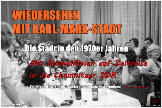 Ergänzt werden die Filmaufnahmen durch 120 digital restaurierte Fotografien. Karl-Marx-Stadt in den 1970er Jahren - Teil 2: Vom Fritz-Heckert-Gebiet bis zum Betriebsvergnügen - eine Reise in die Zeit vor über 40 Jahren. Live kommentiert - zweimal 45 Minuten mit Pause.