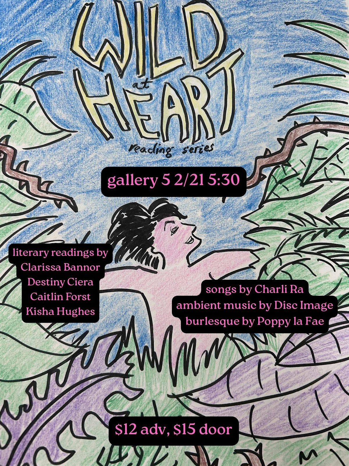 In February for this fiery poetry reading / variety show, attendees will hear shocking and salacious truths from Clarissa Bannor, Destiny Ciera, Caitlin Forst, and Kisha Hughes, with a soundtrack by Disc Image, followed by a killer set from Charli Ra and a scandalous burlesque performance from Poppy la Fae.