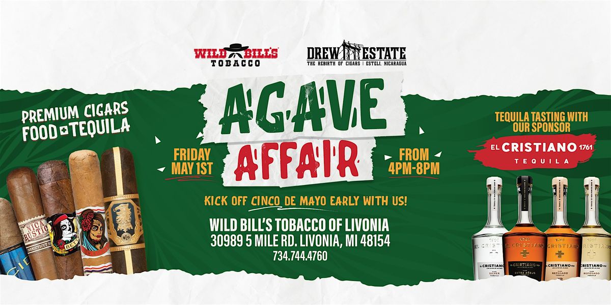 Wild Bill's Agave Affiar! Join us at Wild Bill's Tobacco in Livonia Michigan for our first Agave Affair event! This special event is a perfect way to get together and celebrate Cino de Mayo early with the wide selection of premium cigar specials from and Tequila Tasting with