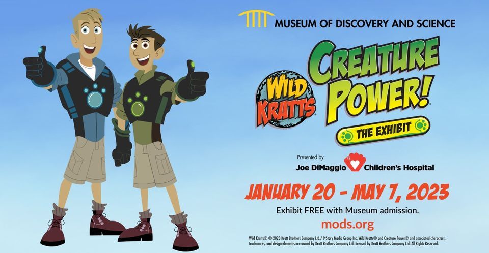 Based on the popular PBS Kids series, Wild Kratts: Creature Power! is all about discovering wild animals and their “creature powers.” The exhibition features animal experts Chris and Martin Kratt and a cast of heroes and villains familiar to fans. Using Wild Kratts technology and the powers of science and collaboration, you will help the team solve problems and rescue animals from the villains!The creature adventure begins at the Wild Kratts HQ and continues through five distinct habitats.