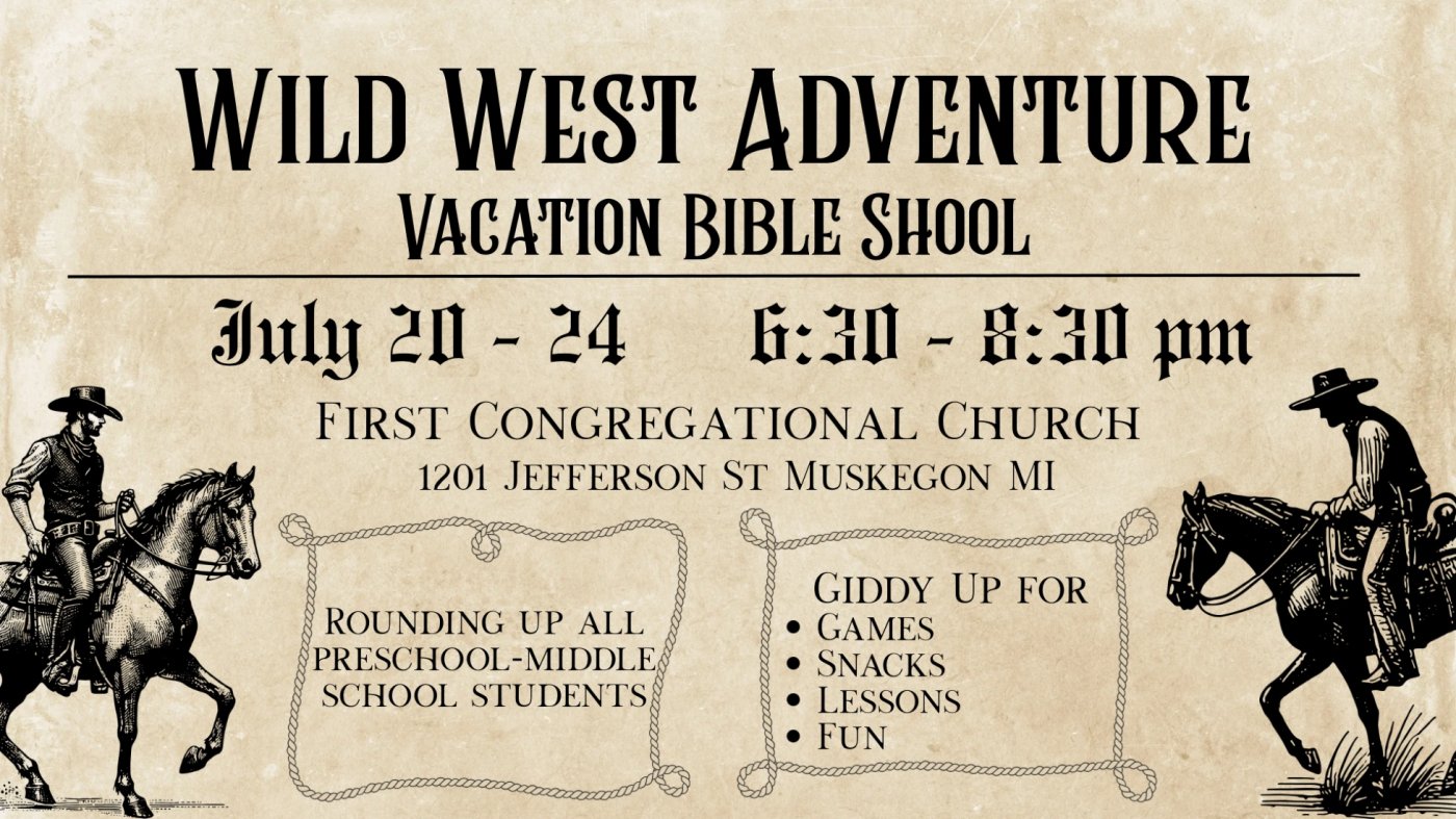 Mosey on over to First Congregational Church for 5 days of rodeo games, crafts, snacks, and lessons!