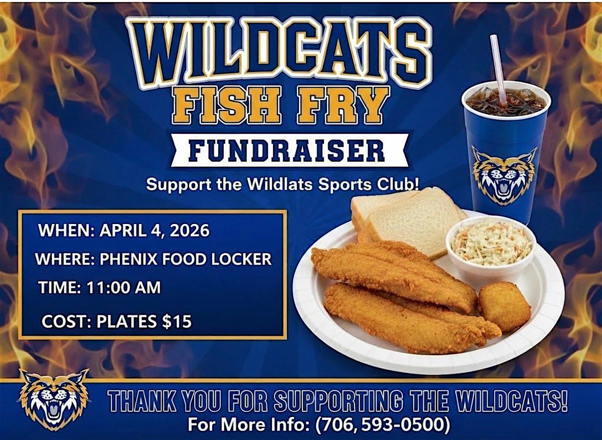 Pre-purchase your tickets to lock in your plate before they sell out. Payments can be sent via Cashapp to $Wildcatsathletics to secure your plate. Please place your name and Fish Fry in the subject line to secure your plate.
