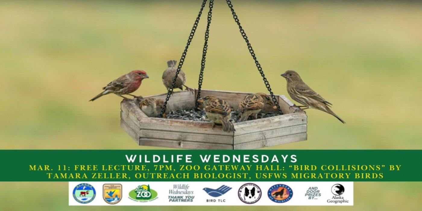 Bird collisions with building windows are a top source of bird mortality and reducing these collisions has been identified as an important action to help halt and reverse declines of North American bird populations. Learn what species are most vulnerable to collisions and what you can do to make your home safe for birds. Presenter Bio: Tamara Zeller is an Outreach Biologist with the Division of Migratory Bird Management for the U.S. Fish and Wildlife Service in Anchorage, Alaska. She spends half of her time in the field surveying birds from airplanes and boats and the other half working with partners to communicate the value of birds and how people can help birds thrive. Though she loves all birds, she specializes in waterbirds, and leads projects related to loon conservation and management. When not working, she enjoys being outside with her dog, Ursa, and exploring the world through travel. Lectures Series Info: We are pleased to host the Wildlife Wednesdays Free Science Lecture Series at the Alaska Zoo Gateway Hall! Stay warm and enrich your knowledge of Alaska's wildlife. Join us this winter on select second Wednesdays from October through April in the Alaska Zoo Gateway Hall. Each talk begins at 7pm and covers a topic focused on wildlife of the Great Land - Alaska. The talks are approximately 45 minutes with questions and answers. Lectures are FREE to the public. Free refreshments available. ASL interpretation is available upon request in advance, reach out to us here if you would like to have an interpreter present (several days notice appreciated!).