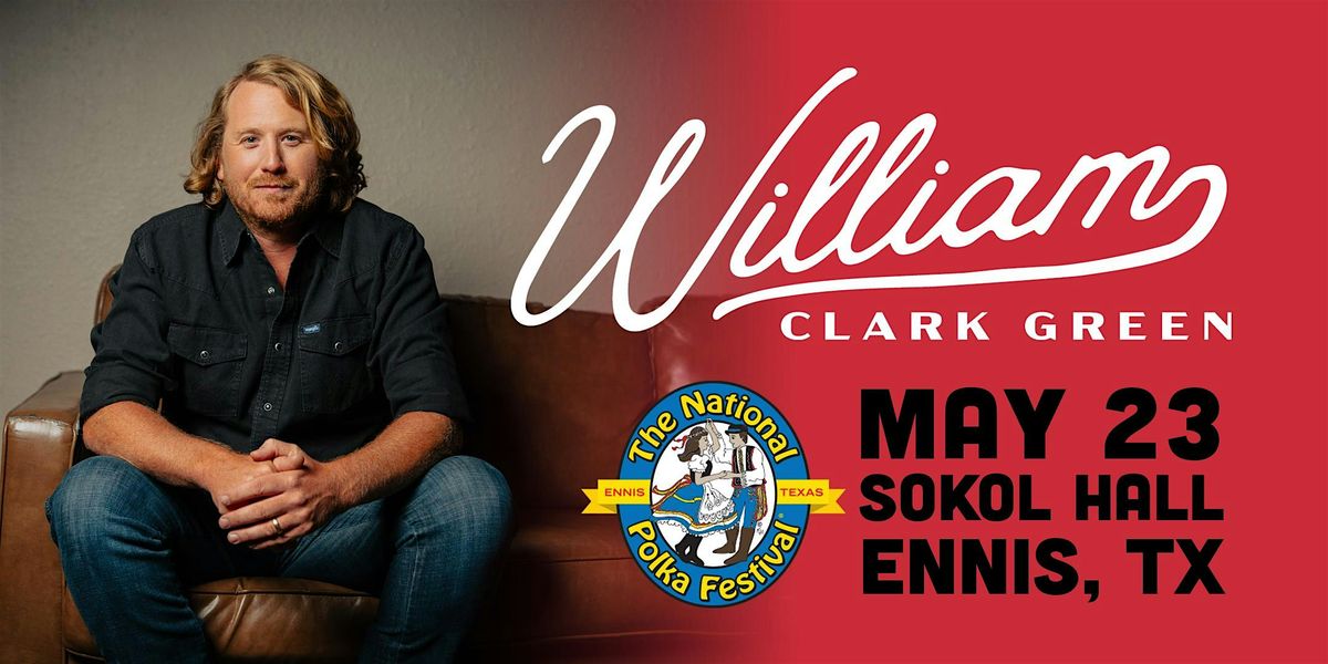 National Polka Festival® proudly presents William Clark Green with special guest, Alex Meixner on Saturday, May 23! This event will be held at the Sokol Hall in Ennis, Texas. Doors open at 8:00 pm.