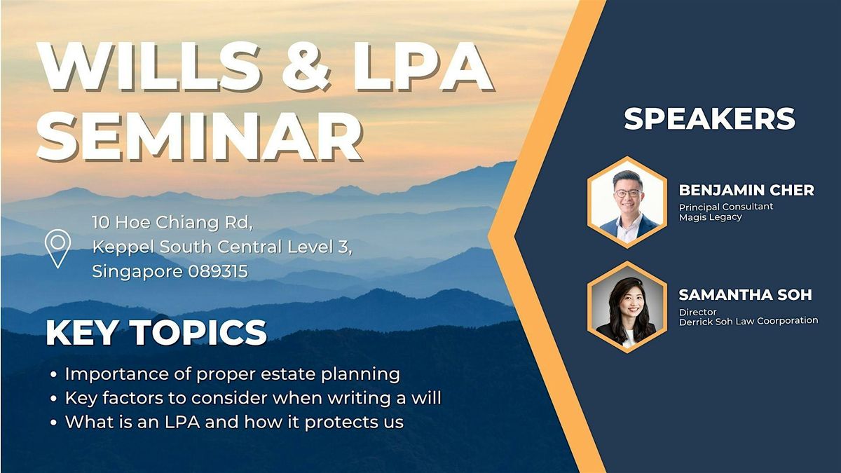 During the seminar, our expert speakers will share about the importance of proper estate planning, key factors to consider when writing a will, and how an LPA can protect you and your loved ones.