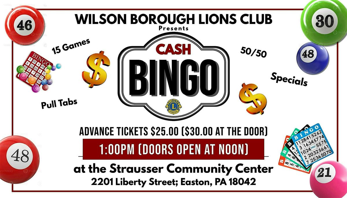 Get ready, Wilson! 🎉 On Saturday, October 18, 2025, the Wilson Borough Lions Club is bringing you our FIRST-EVER Cash Bingo event! We’re talking 15 exciting games, special boards, pull tabs, and delicious refreshments for sale—all to raise funds that help us make a bigger impact in our community. Doors swing open at 12 p.m., and the bingo action kicks off at 1 p.m. sharp! Grab your tickets early for just $25 in advance, or $30 at the door. Come out, win big, and support a great cause—fun, prizes, and community spirit all in one unforgettable afternoon!