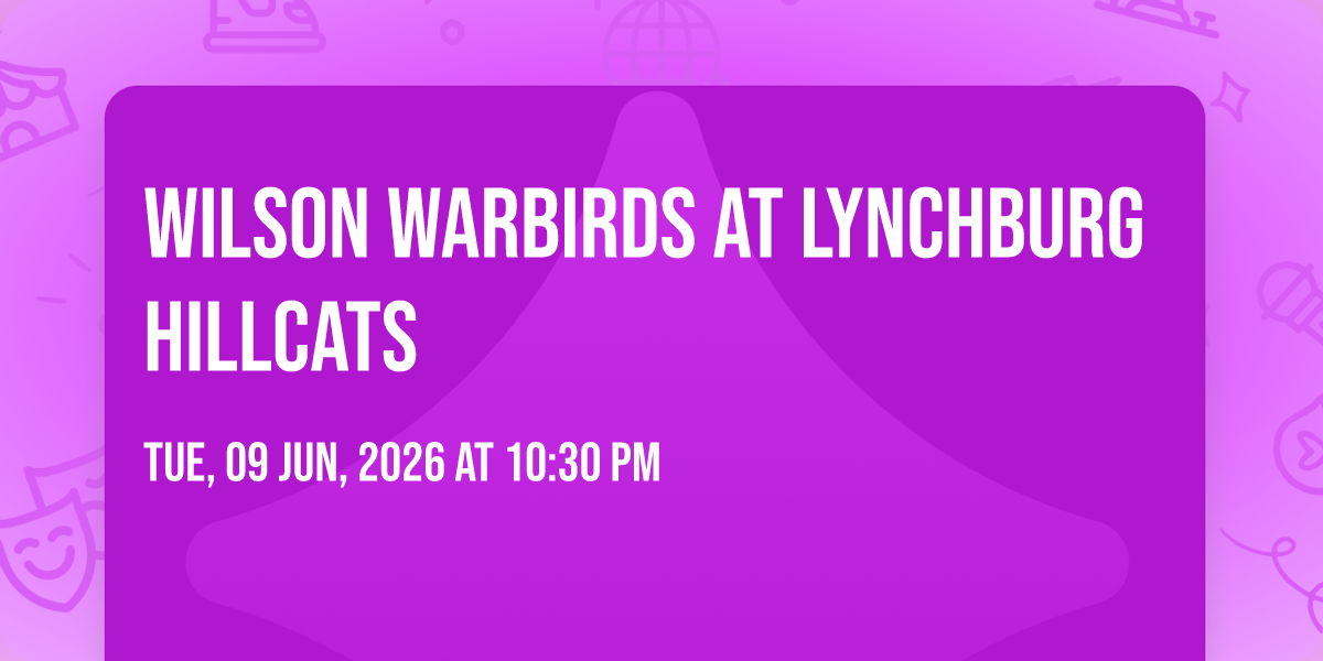 π Location: 37.393, -79.1661π Prepare to be amazed at Wilson Warbirds at Lynchburg Hillcats, the most anticipated gathering of the season! π Set against the stunning backdrop of Bank of the James Stadium in vibrant Lynchburg, VA, this event promises to redefine your expectations. π Mark your calendars for June 14th, 2026 at 06:00 PM and get ready to immerse yourself in an atmosphere of wonder and excitement. β¨ From the moment you arrive, you'll be transported into a world where memories are made and stories come alive. They have crafted an experience that perfectly harmonizes entertainment, innovation, and community spirit. π Join us as we create moments that will be discussed for years!