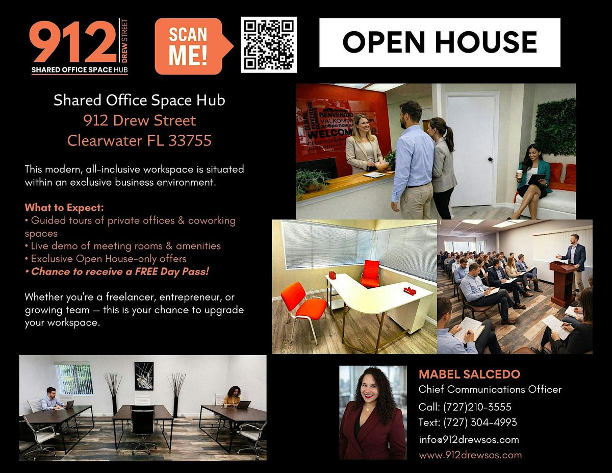 Join us for our weekly Open House and experience everything Shared Office Space Hub has to offer β no commitment, just come explore.
