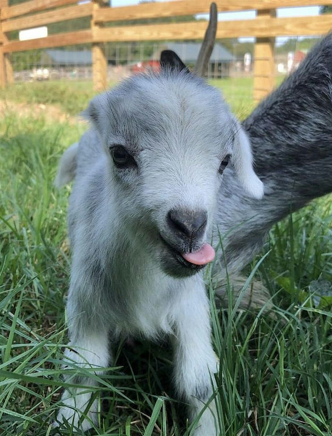 After our highly-successful events last year, we are hosting a series of parties this Spring to celebrate our two favorite things---wine and baby goats. What a great combination. Our neighbor, the Iron Bridge Wine Company, is catering the evening. Gather some friends and come snuggle with our many baby goats while enjoying a lovely evening on the farm. Great food, great wine and great fun in a relaxing, beautiful setting. Your ticket includes a special "wine & baby goat" wine glass to take home.