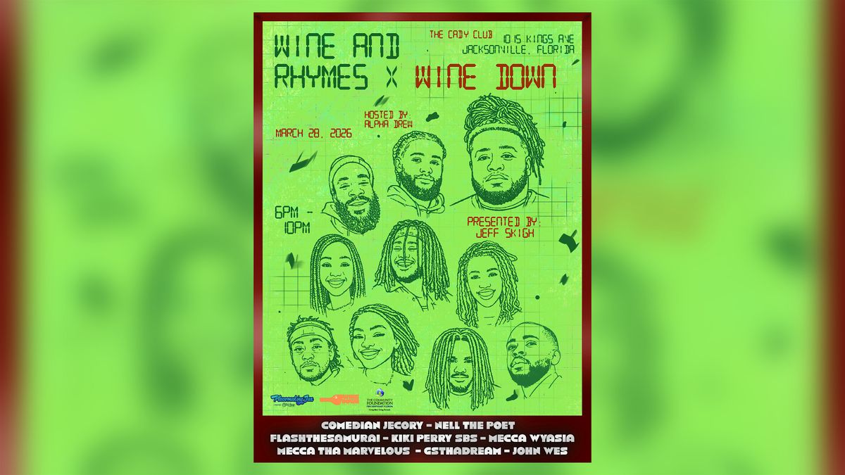 WineDown Jax is excited to be in partnership and bring Wine and Rhymes to Jacksonville, FL via our platform. Meaning for 1 night only, WineDown is back in effect!