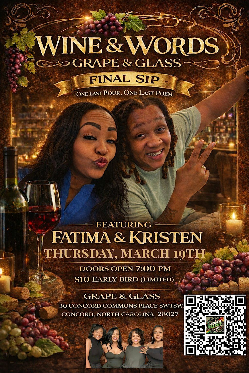#WineAndWords #GrapeAndGlass #ConcordNC #HiddenTalentStudios #SpokenWord #PoetryNight #UMATTA