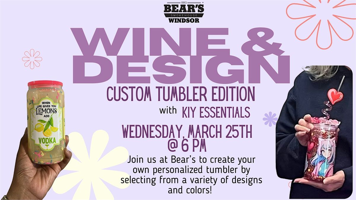 Join us at Bear's BBQ Windsor for a fun in-person session where you’ll get to design your very own custom tumblers! Bring your friends, unleash your artistic side, and leave with a cool, personalized tumbler that’s totally you.