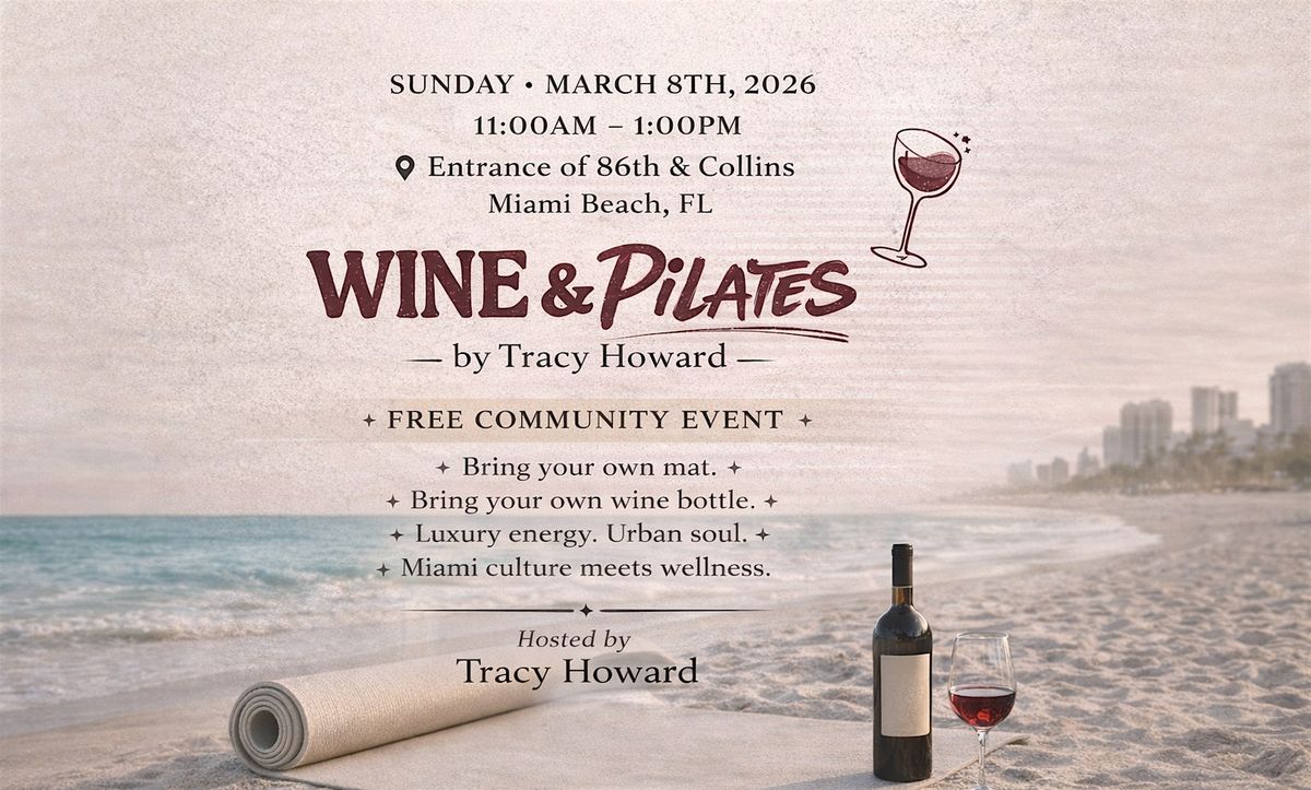 Wine & Pilates by Tracy Howard is a free community event designed to bring together luxury energy, urban soul, and intentional movement — right on the sand.