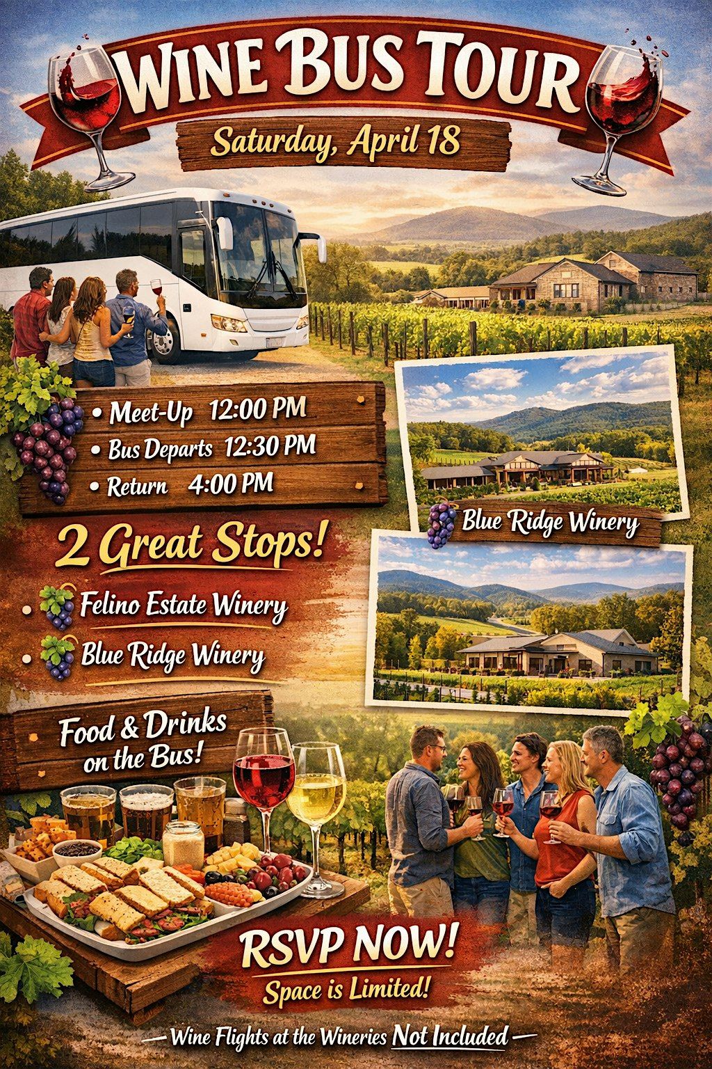 Hop on the bus and sip your way through an afternoon of great wine, vibes, and views!