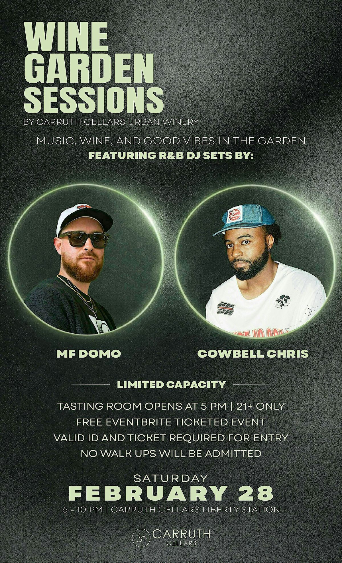 We kindly ask you to please be respectful of Carruth Cellars and Liberty Station so that we can continue hosting Wine Garden Sessions for you all! Looking forward to a great night!
