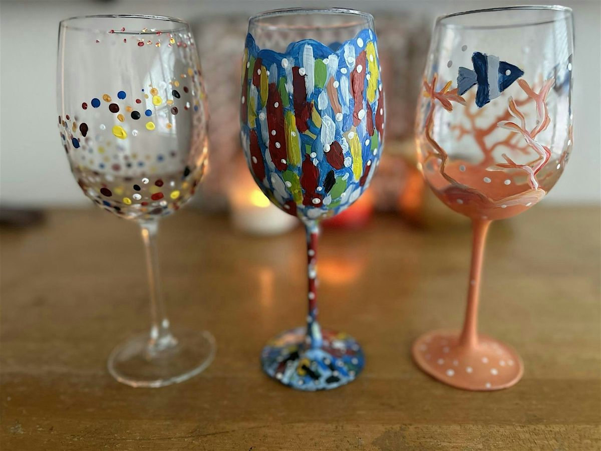 Paint a pair of wine glasses with expert guidance. Ticket includes 2 glasses. Paint is food safe.