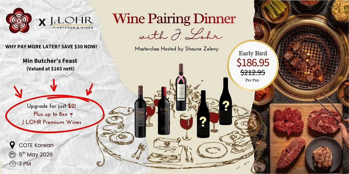 Elevate Your Dining Experience: A Masterclass at COTE Korean Steakhouse. Early bird $186.95 | Get The Butcher's Feast + up to 8 J.Lohr wines
