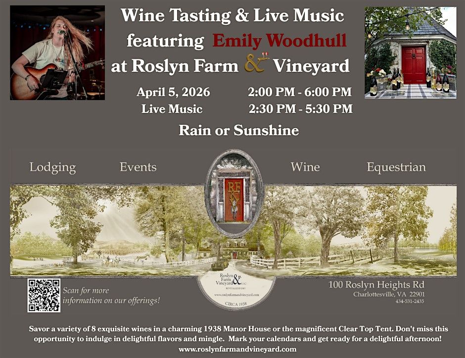Wine Tasting & Live Music at Roslyn Farm & Vineyard with Emily Woodhull