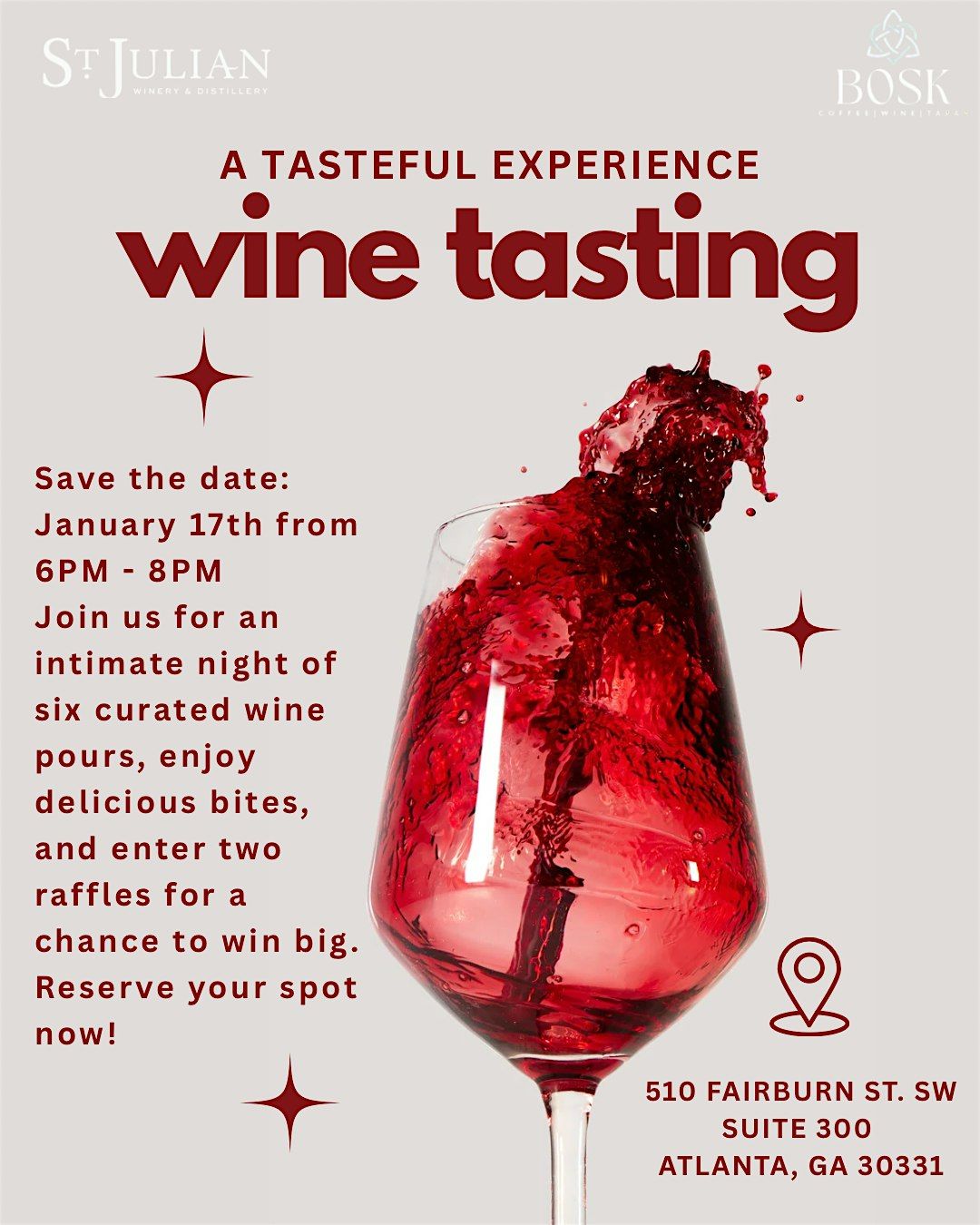 Join Us for a WINE TASTING Experience!