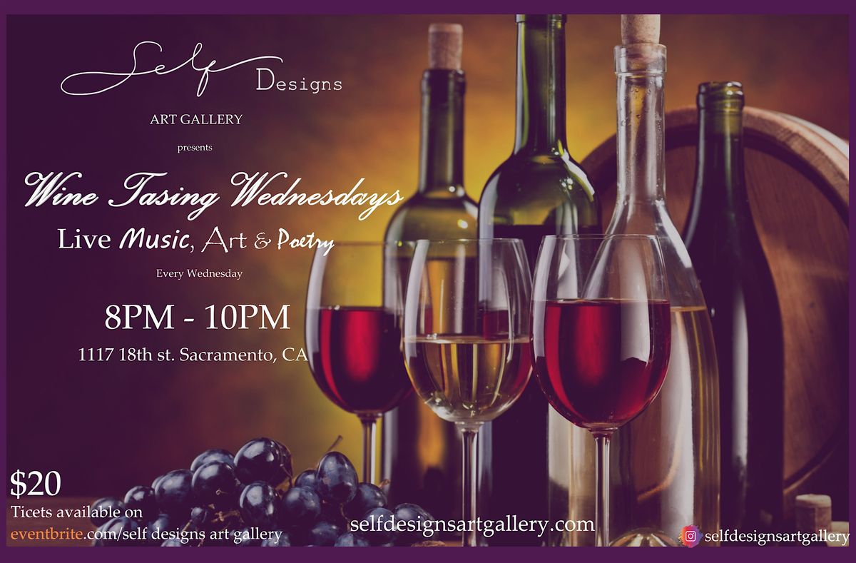 Support Small Business owners! Join us for Wine, Art + Music for the 21 and over crowd on Wednesday nights at the Self Designs Art Gallery in Midtown Sacramento!