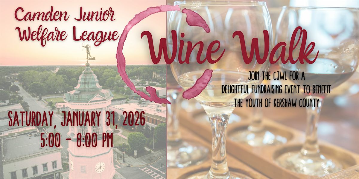 Get the girlfriends together or make it a fun date night or early Valentine's gift for your sweetheart. The annual CJWL Wine Walk is your chance to stroll, sip, and savor some amazing wines while exploring local businesses in downtown Camden. Proceeds from the event will be used to support classroom grants, scholarships, and organizations that improve the lives of youth living in Kershaw County.
