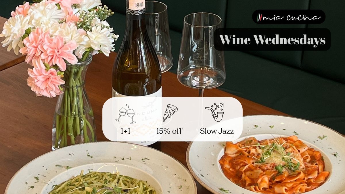 🍷 Wine Wednesday at Mia CucinaSlow down midweek and unwind the Italian way.Every Wednesday, join us for Wine Wednesday, where good wine, soulful music, and authentic Italian flavours come together effortlessly.Enjoy 1+1 on select domestic wines alongside 15% off on food, as soft jazz melodies create the perfect evening ambience. Pair your wine with our authentic Italian pizzas and artisanal pastas, crafted with care and tradition.Conclude the evening with our decadent, house-made desserts—an elegant finish to a beautifully indulgent night.Sip. Savour. Stay a little longer.