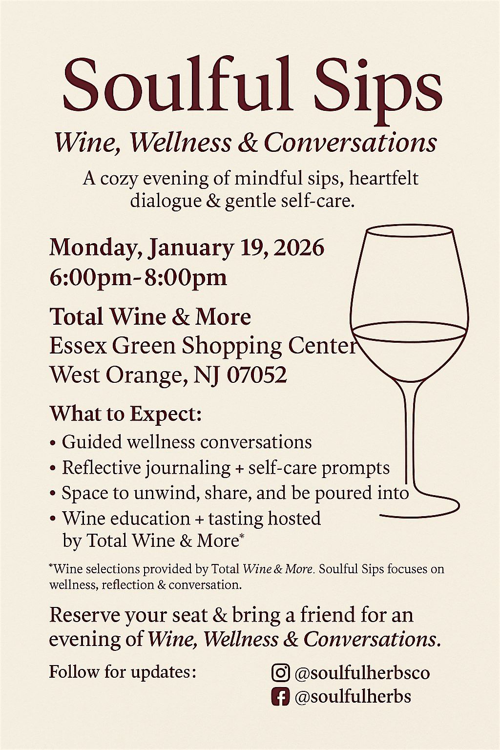 A cozy evening of mindful sips, heartfelt dialogue & gentle self-care. Guided wellness conversations, reflective journaling & wine tasting.