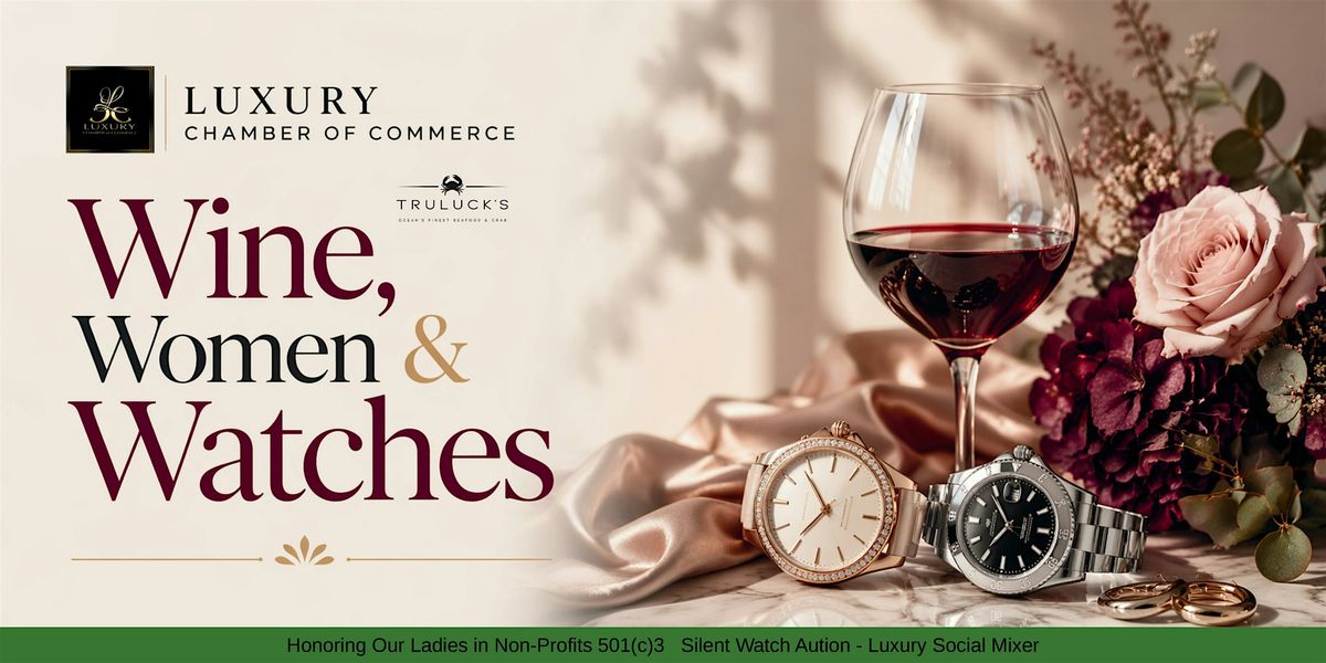 The Luxury Chamber of Commerce proudly presents Wine, Women & Watches, an exclusive luxury networking event taking place April 20, 2026 at 6:00 PM at Truluck’s on the Beach. This sophisticated evening promises an unforgettable experience filled with fine conversation, elegant surroundings, and exceptional connections.