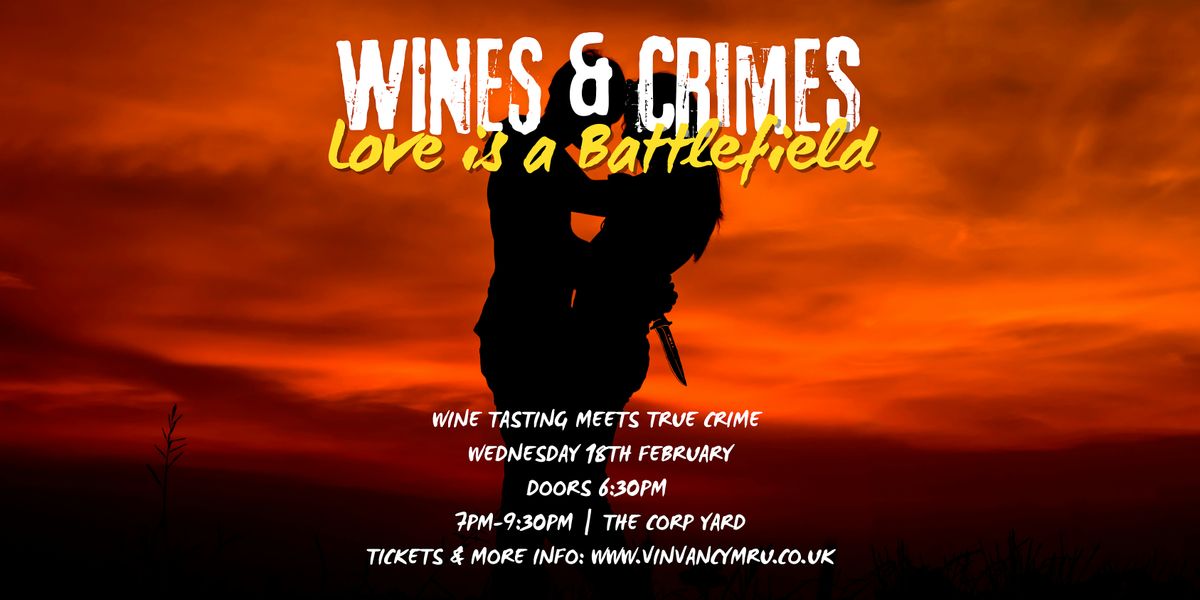 Join us for Wines & Crimes: Love is a Battlefield, where we explore real-life crimes of passion and obsession, each one poured alongside a carefully chosen glass of wine.
