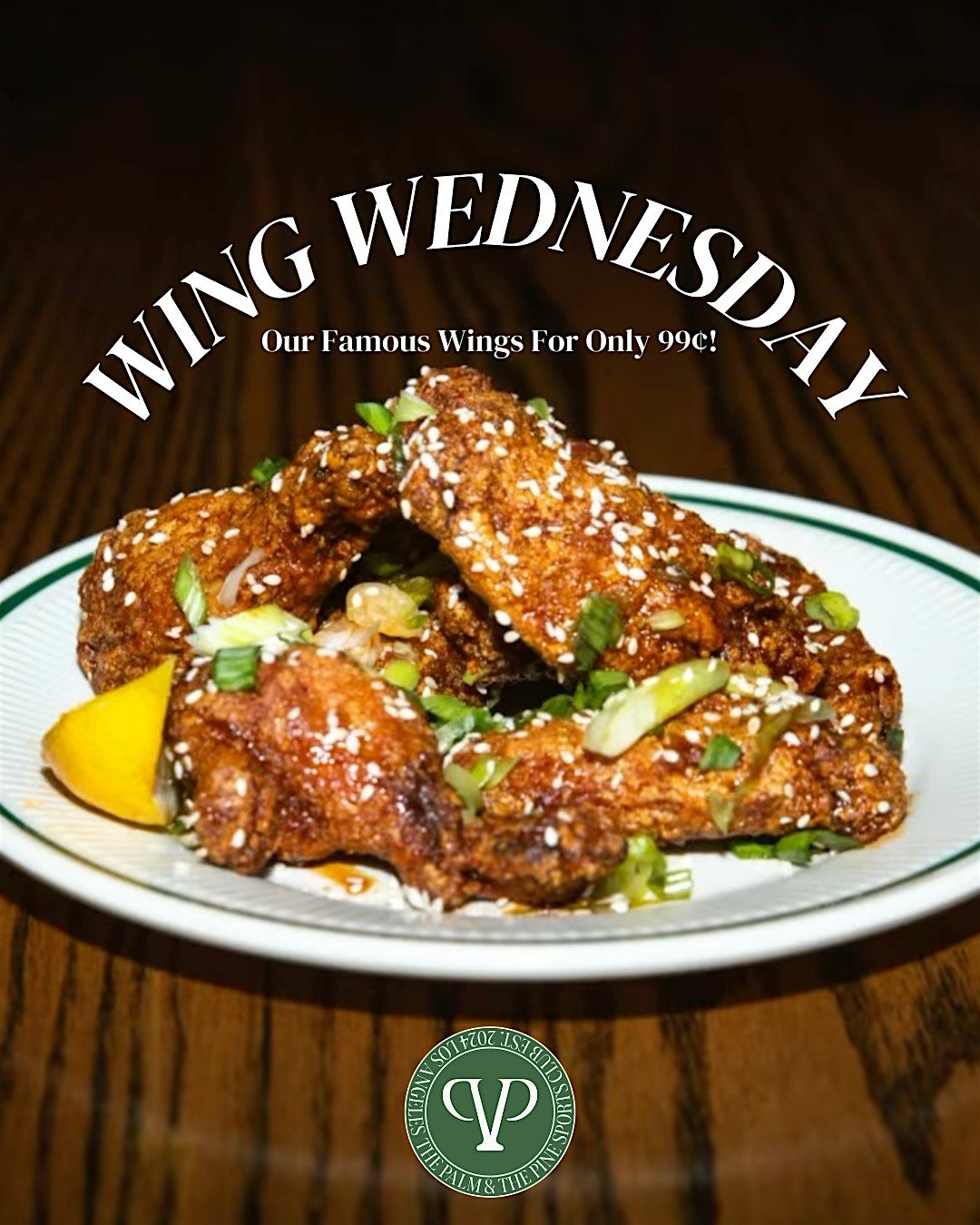 Wing Wednesday is a special event at The Palm & The Pine, offering guests the chance to enjoy our famous wings for just 99 cents each from 5 PM to 2 AM on select Wednesdays. There’s no limit per person and no drink purchase required, making it the perfect opportunity to indulge. However, wings are available for dine-in only—no to-go orders. Since this isn’t an every-week deal, each Wing Wednesday is a highly anticipated event you won’t want to miss!