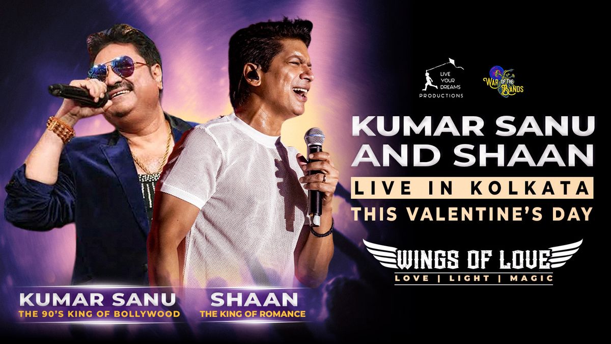 Wings of Love – A Night Where Music Touches the SoulWings of Love isn’t just a concert—it’s a Valentine’s celebration Bengal has never experienced before.On this one extraordinary night, where timeless voices paint Kolkata in melodies of love.Two Legendary Voices. One Majestic Stage.Shaan – The voice of endless charm and modern magic.From the dreamy Chand Sifarish and Jab Se Tere Naina to the high-energy Deewangi Deewangi and Woh Pehli Baar, Shaan’s music continues to make hearts race and feet dance across decades.Joined by a Godlike 90s Icon – The sound of an era.A mystery legend whose voice defined the golden age of Bollywood romance. His songs became the heartbeat of the 90s, turning every love story into an unforgettable melody.For the first time ever, this celebrated voice joins Shaan on a Valentine’s stage in Bengal.Together, these icons will carry you through a breathtaking journey from the golden glow of the 90s to the vibrant beats of today.Highlights of the EveningShaan Live: Sing, sway, and lose yourself in a cascade of melodies and high-energy hits that unite generations on the dance floor of love.A 90s Legend Live: Relive the era of true romance as every note brings back the magic of Bollywood’s golden age, an intimate waltz of heart and memory.The Theme: Love & CelebrationA symphony for dreamers and believers. Music that binds college sweethearts, lifelong lovers, and families alike in a single heartbeat of joy.The Atmosphere: An unforgettable Valentine’s carnival inside the Netaji Indoor Stadium—dazzling lights, immersive LED visuals, and a night shimmering with music and love. A spectacle where every corner of the arena becomes a dance of light and romance.Why This Night is Pure Magic: For the first time ever in Bengal, Shaan and the godlike voice of 90s Bollywood share one grand Valentine’s stage, letting us relive an era of golden romance while dancing to today’s vibrant beats.Walk away with memories as eternal as their melodies.This isn’t just a concert.It’s love set to music…a night to sing, sway, and fall in love all over again with every unforgettable note.