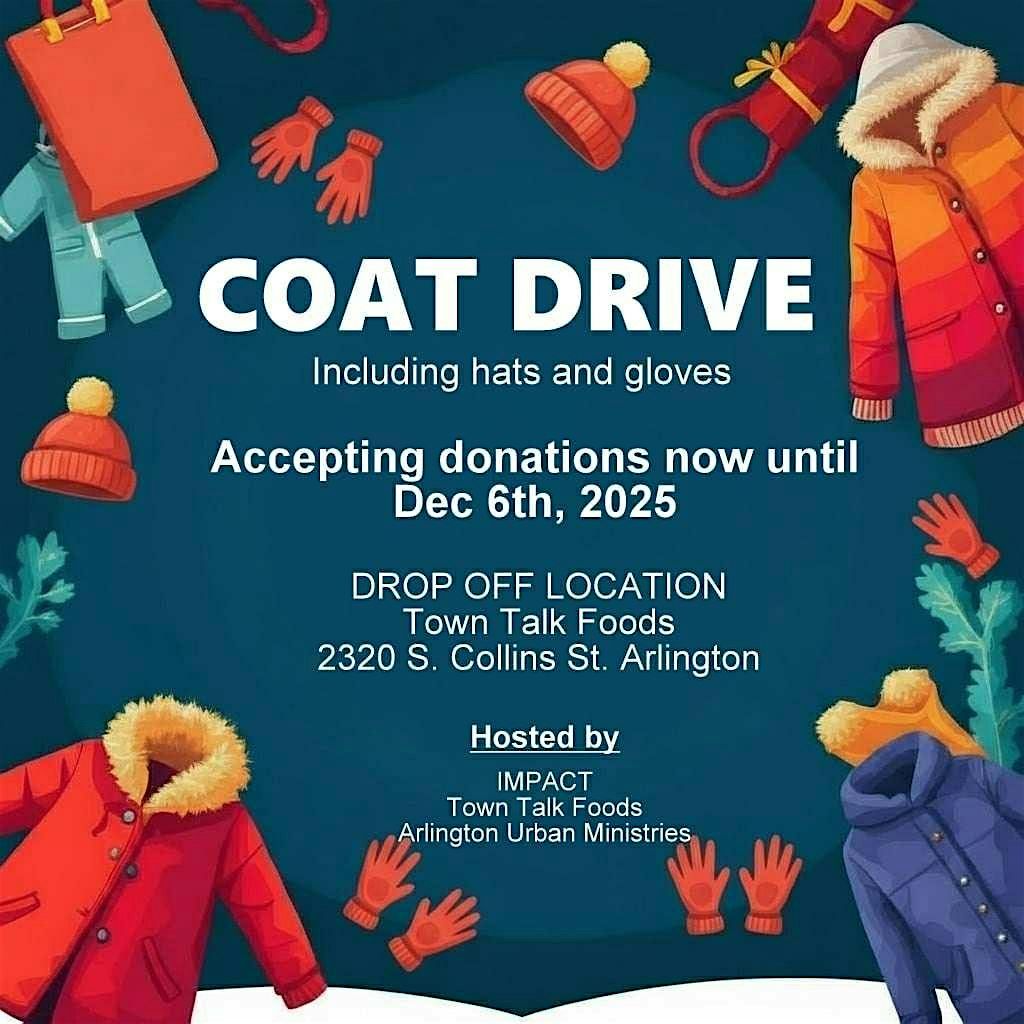 This is the final day of our winter clothing drive. Swing by and help keep someone warm this winter. I want to thank our partners Town Talk Food and Arlington Urban Ministries for supporting us with this event.