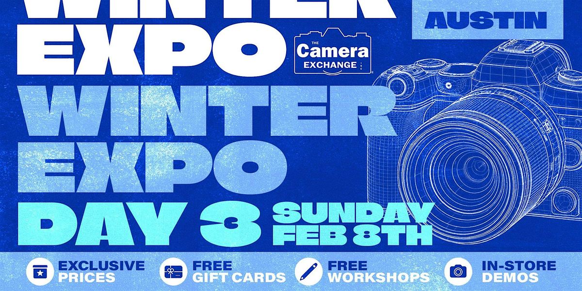 Austin, our Winter Expo & Sale is back! Join us at our store at 5907 Burnet Rd. from Friday, February 6th through Sunday, February 8th for exclusive savings and deals, giveaways, free gift cards and interactive in-store demos and classes from Sony, Nikon Canon, Sigma, Tamron, and more!